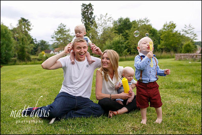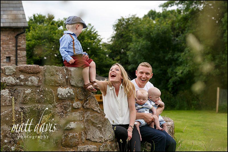 Anyhow fast forward four years and I get a phone call from Jon telling me two have become five (a toddler of 2 and 7 month old twins). Whoop, whoop that’s fantastic news, you gotta love kids, although I wouldn’t want twins myself….talk about hard work! Well, with the wedding anniversary looming ever present, Jon figured (or did Laura lay a few easy to pick up on hints?) a family photo shoot on the exact same date would be a great way to keep some memories alive in years to come. It’s flattering to be asked to return to take more photos, and also testament to the fact great service goes along way. And how could I possibly say no with this uber fun couple…..ever minute around them is high octane. I set out to Monmouthshire (where they now live) to capture some family portrait photography, that hopefully depict the real characters they all are, and created something wonderful to hang on the wall of their barn conversion for a few more years to come.