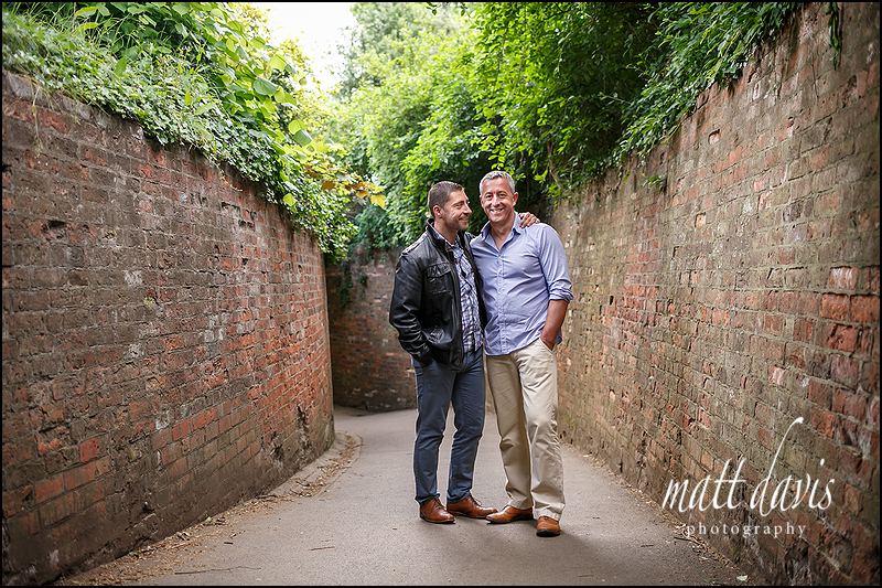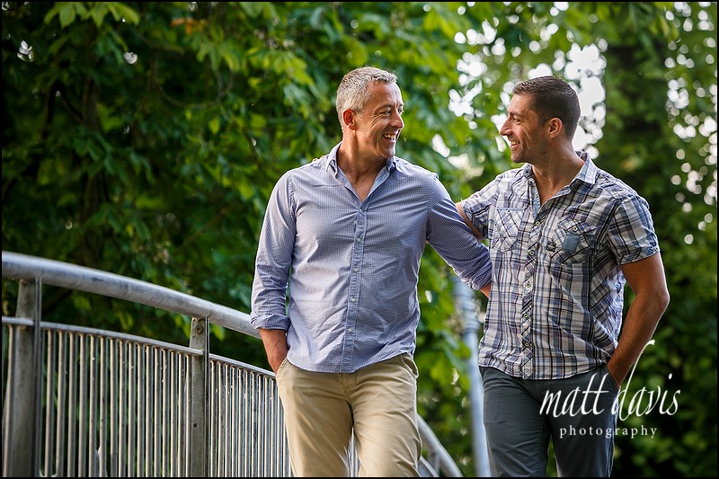 What do you do if one of you feels comfortable in front of the camera, and the other is more self conscious. You have an engagement shoot of course. This is what Pete & Nick decided was the right course of action, whilst getting to know ‘me’ the photographer at the same time. I understand not everyone has the relaxed nature that some clients appear to have right off the bat. But build in being gay and affectionate in public to the mix as well, this was gonna be a tough call. It wasn’t until meeting Pete & Nick that I learnt how a gay couple showing affection in public is still considered taboo. Something hetro-sexual couples take for granted such as walking down the street hand in hand is a considered thought if you’re gay, bi, lesbian etc. Having Pete & Nick feel comfortable therefore in the public park was paramount, so keeping affection low key was probably best! It really is a shame this is the case though, and makes you realise what prejudices still exist in society, even if you don’t have them yourself.