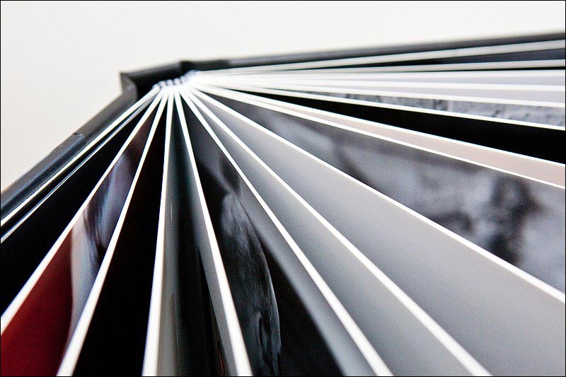 The page construction is reminiscent of a more traditional album style, yet when combined with contemporary design, modern printing, a timeless leather cover (beautifully blind embossed) and elegant documentary photography, this certainly doesn’t look dated.