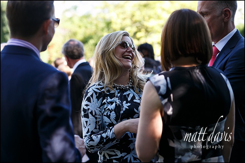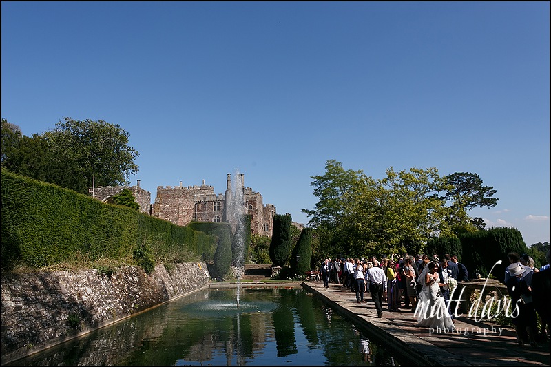 Wedding reception drinks by the fountain at Berkeley castle.