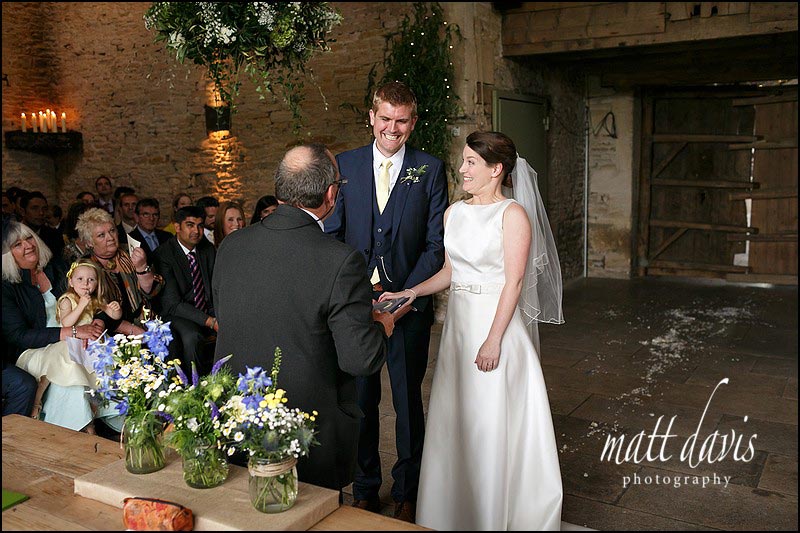 I should point out though, it’s not all smooth sailing at these dizzy heights. It can lead to forgetfulness, which in Heidi’s case was clearly directed at her bouquet. Having initially tried to leave it in the wedding card upon arrival, five minutes later she then walked down the isle still without it. But you know what, it really didn’t matter, as the smile on her face said it all. She was there to marry James, and that’s that! It wasn’t about the flowers, the dress, the car or the photographer (ohh hang on…..!) it was about the most important man in her life. With her niece and nephew paving the way with petals, Heidi entered the wedding ceremony at Cripps Stone Barn, with a beaming smile and infectious glow. Albeit the scattering of petals didn’t exactly go to plan, but hey!