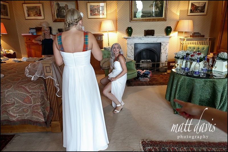 I know, you’re asking yourself what an earth she’s doing right? Well, at this point I’d mentioned my general wedding day tip for brides…..that is simply this: If you need the toilet, sit on it back to front in your wedding dress it’s far easier (apparently). Hence the bridesmaid giving a demonstration!