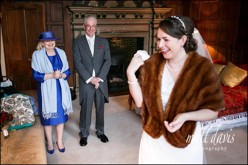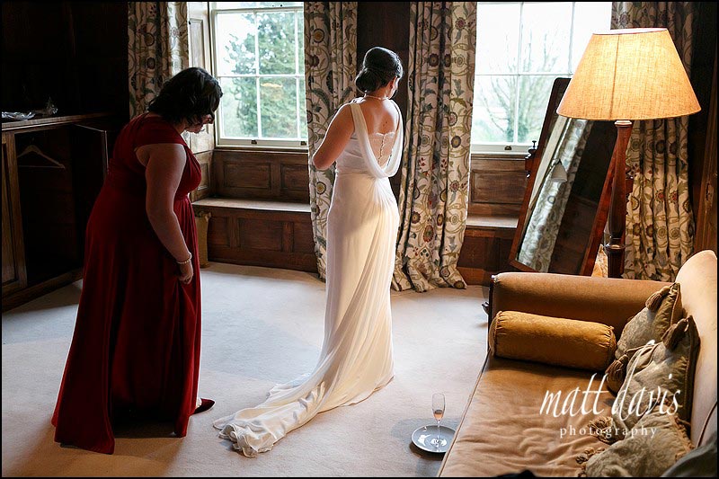 Elmore Court in Gloucestershire is a relatively new wedding venue, one I’d not photographed a wedding at before either. I’d been looking forward to Tom & Zoe’s day therefore as it would be a chance to have a look around this new venue to see what it offers. Thankfully the day was dry, albeit a little windy and overcast, but as soon as I stepped inside Elmore Court I was greeted with fine hospitality and the warm cosy feeling of a well appointed country mansion. Looking around inside I concluded getting some great wedding photos here wasn’t going to be difficult, the building has fantastic high ceilings, loads of character, and furnishings that complement the spacious rooms.