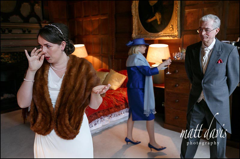This was the first time too of meeting with Zoe & Tom, and I must say Zoe was equally as warm and welcoming as the venue itself. After a quick look around I was introduced to the other friends and family staying in the rooms, and set about my usual task of documenting the mornings preparations. It quickly became clear that whilst Zoe and her bridesmaid were having a pampering in the form of hair & make-up, Zoe’s dad Mike was the self appointed waiter providing drinks & snacks to fuel the morning activities. Not only did his duties include walking Zoe down the isle and his speech, it also extended to ‘steaming the veil’ in order to remove creases too. If any other fathers of the bride are reading, this is the full service! Clearly they were a close family and this was evident throughout the day.