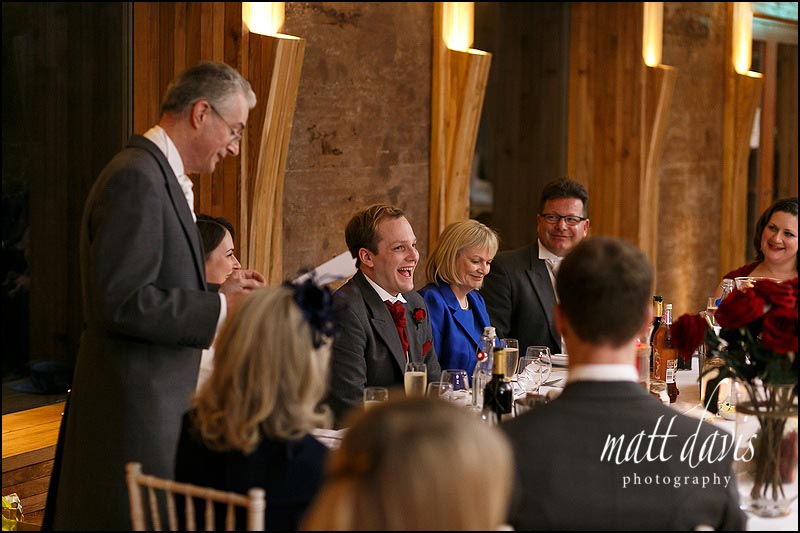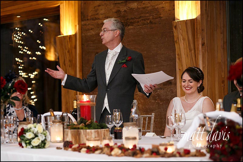 After the ceremony it was swiftly back to Elmore Court to capitalise on the last light of the day, and welcome guests with mulled wine. Following on form the drinks reception guests were led through to the ‘Gillyflower’ which is a sustainably built from estate materials using traditional methods yet designed in a contemporary fashion. (yes this is taken from their website). It really is a spectacular room as you’ll see from the photos. On a summers day you can spill out onto the lawns with far reaching views across Gloucestershire. It a room designed for dancing and partying the night away too. My time was up however once the speeches were completed, so I bid my farewells and left ready to return and get down to some christmas wrapping!