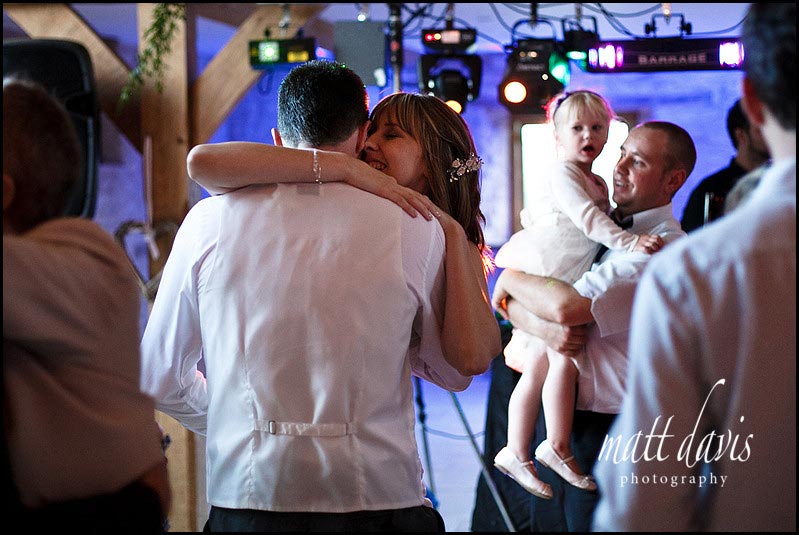 Kingscote Barn wedding photography by Matt Davisblack and white wedding photos at Kingscote Barn Kingscote Barn wedding photos  Dance floor photo at Kingscote Barn with laser beams