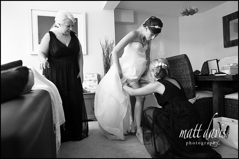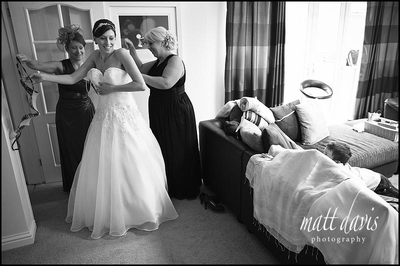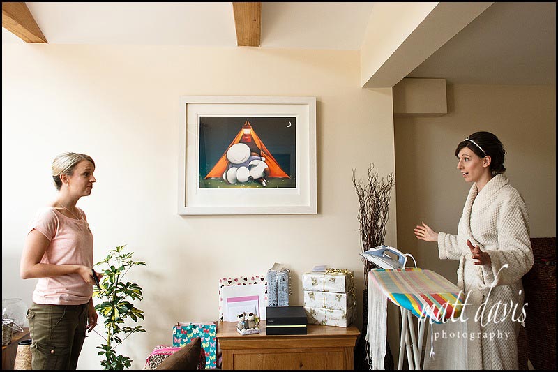 The look of concentration as adjustments ‘DIY style’ (on the morning of the wedding) are made to the bridesmaid dresses.