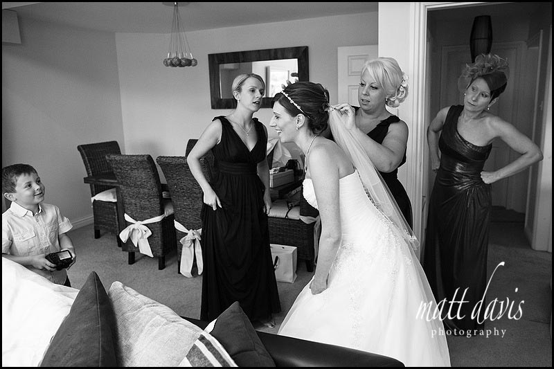 Ahh the ‘stoop’ to have your veil fixed in. Always an awkward moment, and a testing one to make sure it’s fitted correctly and/or the bridesmaids know how to take it out or adjust it if necessary later in the day.