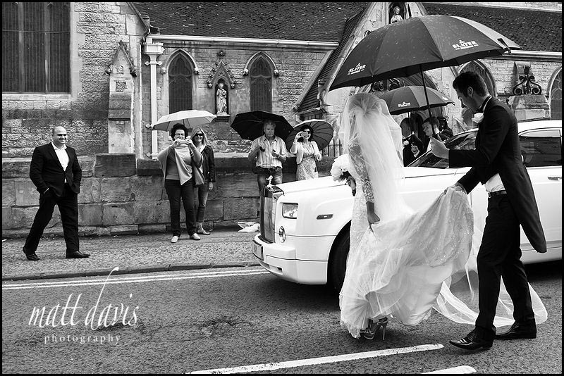Gemma arrived in this obese white Rolls Royce Phantom and despite not a single drop of rain all moring, a light shower just had to happen at the wrong time.
