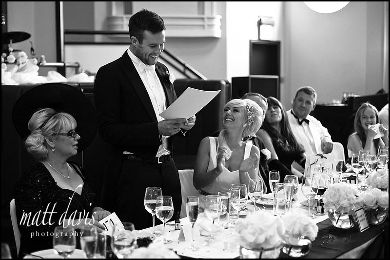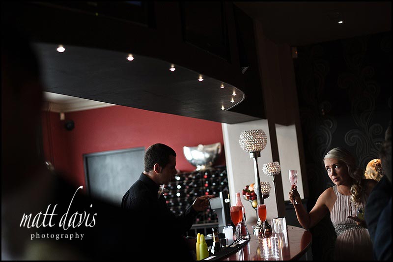 With so much going on in the day, and Gemma’s change into her evening wedding dress there was very little time for posed photos. I grabbed this quick photo by the bar before Gary & Gemma’s big entrance down the Daffodil’s sweeping staircase for their wedding dinner.