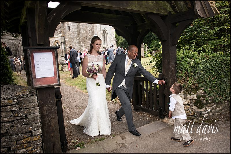 In this instance the main bridal party including family members came through this side door of Kingscote Church, leaving other guests to exit an alternative doorway. By doing so, this free’d up a suitable space to spend a frantic five minutes photographing the basic group requirements, in what is a pleasant spot without any harsh light. And that my friends is why on this occasion group wedding photos were done and dusted 13 mins after the couple walked down the aisle. Not all churches have this option though, neither does the weather always behave itself giving bright, yet shaded cover in the place most suited to photos.