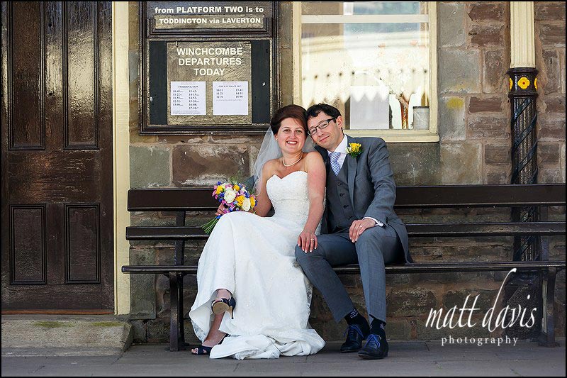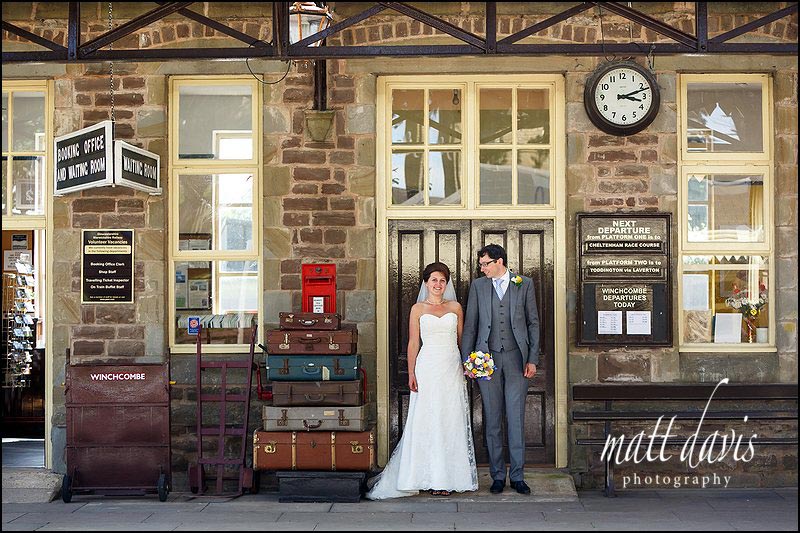 With dark skies overhead the day commenced with bridal preps in Cheltenham, before the short journey up to Bishops Cleeve for the wedding itself. With the prospect of rain, and knowing the Tythe Barn in Bishops Cleeve had very limited ‘picturesque’ outdoor spots for photos, we’d decided to utilise the extended drinks reception time to find an alternative local spot for wedding photos. Having discussed this on the phone a week earlier, we both agreed it’d be fun to try Winchcombe train station, as if it’s wet the overhead cover would at least offer some shelter, yet provide good photo opportunities. Well, despite all this consideration the day did in fact turned out to be beautiful, very warm, and with only the slightest damping, which conveniently occurred during the wedding breakfast.