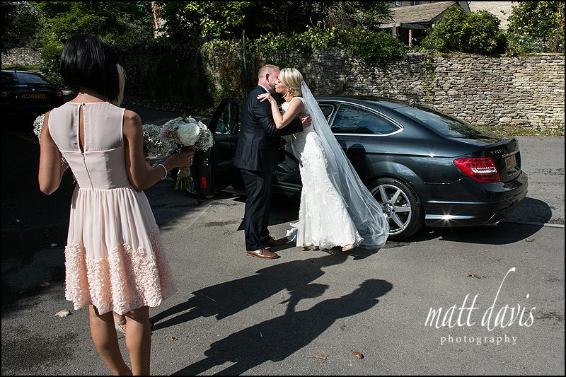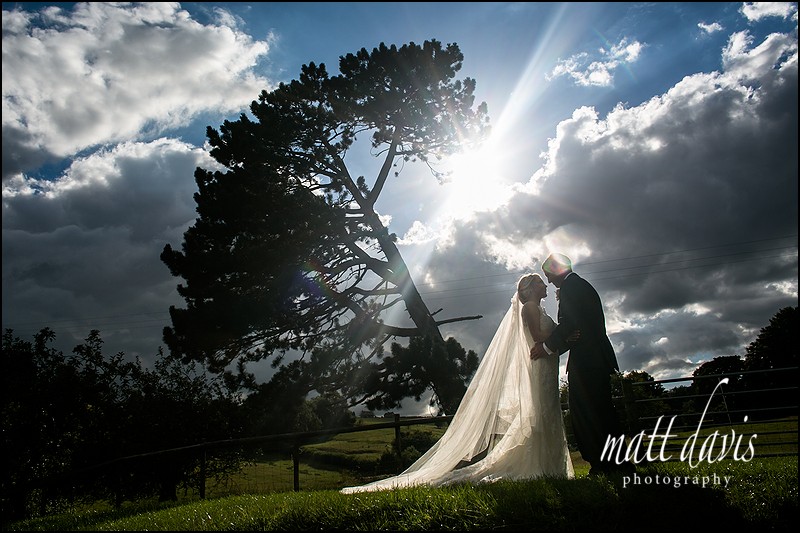 With five minutes to spare I took the newly wed couple for a few informal photos around the grounds of Kingscote Barn……which inevitably means leaning on a fence and kissing at some point.