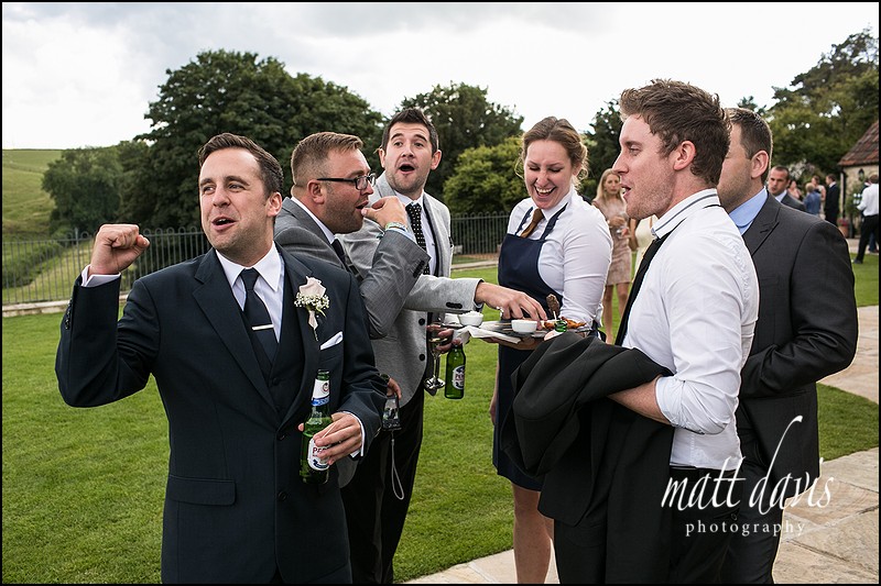 Meanwhile, whilst setting up this next group shot (which incidentally is all the ‘couples’), the single crew tucked into canapés and beers a plenty.