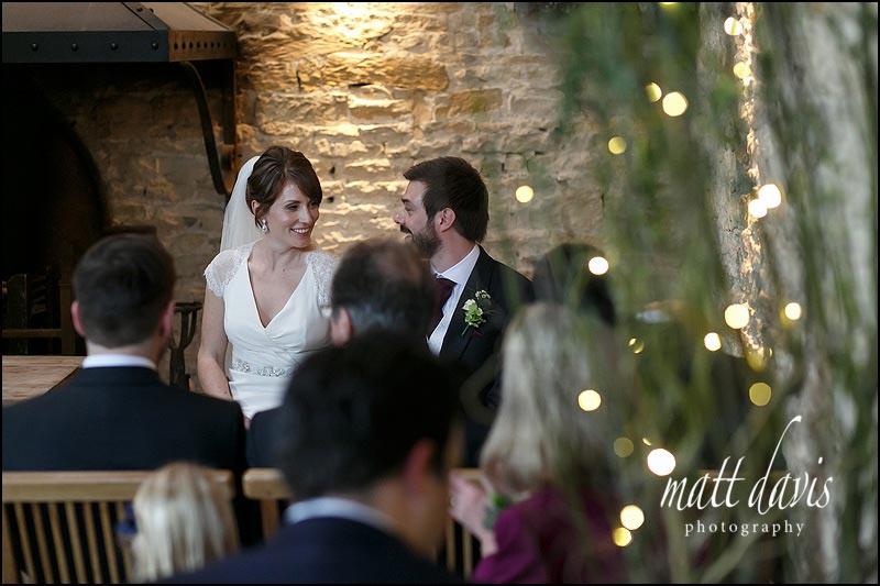 BOOM. Love the light you get from the large barn doors at Cripps Stone Barn. Problem was, Claire was now heading for the much darker area around the fireplace for the ceremony itself – arrrrgh!