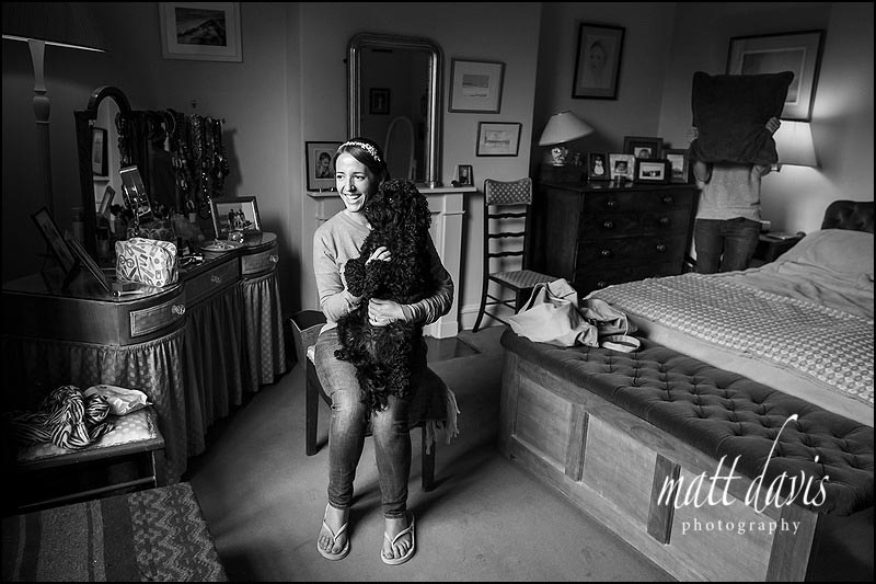 I’d met Henry and Catherine for an engagement session earlier in the year, so knew the couple well. It wasn’t a surprise therefore to meet Tilly (the dog) as I stepped out of my car, who featured later at the special request of Catherine for a ‘wedding day photo’. There was also a full compliment of bridesmaids (six in total) as well as a few other familiar faces from local suppliers I often meet when photographing weddings in the Cotswolds. One of my favourite florists Fiona Perry was on hand to create some stunning wedding bouquets, and floral arrangements in the church. We had a brief chat, (discussing the skills necessary to photograph flowers) before she retired back to her home following a rather early 5:30am start. Luckily for me a typical wedding day usually starts late, BUT finishes late….which is much more suited to the night owl that I am!