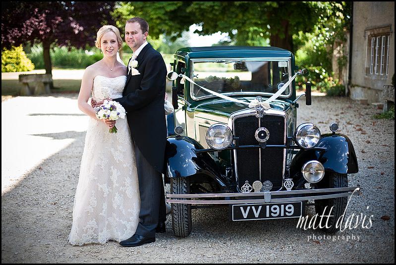 Wedding couple. Vintage wedding car. Friars Court. Photo. Check.