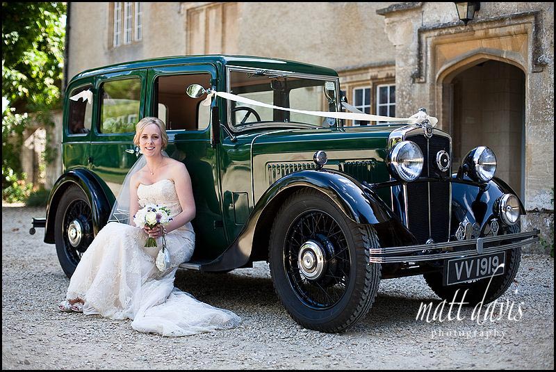 Grab a pew, give yourself 5 mins off work and take a look at Martin & Bryony’s wedding from Friars Court in July 2010. As far as quintessential English weddings go, this must be up there with the best of them. Bridal preps in a chocolate box Cotswold village, followed by a wedding ceremony at St Mary’s Church, Swerford then onto Friars Court in Oxfordshire for the wedding reception. Not only was the wedding venue choice pretty much perfect, the transport matched the theme too….with Bryony traveling in a classic vintage racing green wedding car.